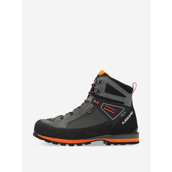 Ботинки от Kayland — оптимальный выбор экипировки для длительных горных переходов и треккинга. Мембрана GORE-TEX® надежно защищает ноги от промокания и поддерживает комфортный микроклимат внутри обуви в самых трудных условиях. Подметка Vibram® гарантирует оптимальное сцепление на неровных поверхностях. Предусмотрена возможность закрепить на обуви кошки при движении по самым сложным участкам маршрута. На задней части ботинка есть текстильная петля, с помощью которой вы сможете быстрее переобуваться. Мягкая манжета на голенище не сковывает движения и помогает сделать каждый шаг более комфортным. Прочный широкий бампер из резины защитит стопу от травм при случайных ударах об острые камни и продлит срок службы изделия. Нижнюю и верхнюю часть ботинок можно фиксировать независимо друг от друга благодаря двухсекционной шнуровке. Металлические петли позволяют регулировать силу натяжения шнурков и точно подстраивать посадку под себя. Модель изготовлена из устойчивых к повреждениям материалов и выдерживает даже самые серьезные нагрузки во время походов по пересеченной местности. Система поддержки голеностопа Ankle Lock System фиксирует лодыжку, предотвращая возникновение травм и не сковывая при этом движения.