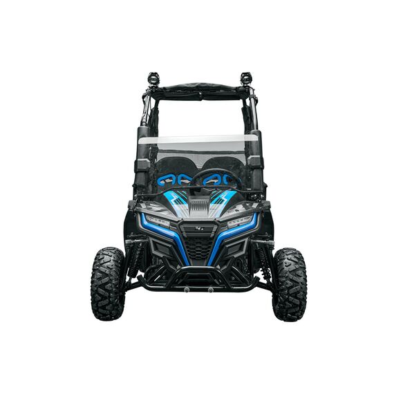 Двигателю общего назначения с объемом 163 куб.см и мощностью 7л.с. пускай и не хватать звезд с неба по скорости, но по тяге он даст фору многим. Эластичный и тяговитый двигатель как нельзя лучше подходит для безопасной езды совсем юных водителей. Пуск двигателя предусматривает не только электростартер, но и ручного стартер, который упрастит родителям задачу по запуску машинки в холодное время года, а дистанционный пульт запуска и выключения двигателя обеспечит дополнительную безопасность и удобство.